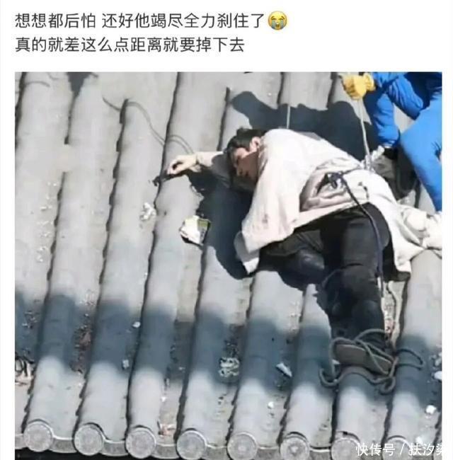 前几天,成毅要不被刮到脸,要不被撞到手臂,撞到腰,更是因为威亚的不专业,在房顶走戏时,如果不是成毅用身体剐蹭,手动制止防止跌落,他差点从房顶上摔下来了,这身体距离屋檐不足半臂距离,吓得工作人员帽子都掉了,我们看到成毅脚边的威亚绳子都松松垮垮的,感觉都没起什么作用,还好成毅自己刹住了,不然这么高掉下去,真的不是开玩笑的!